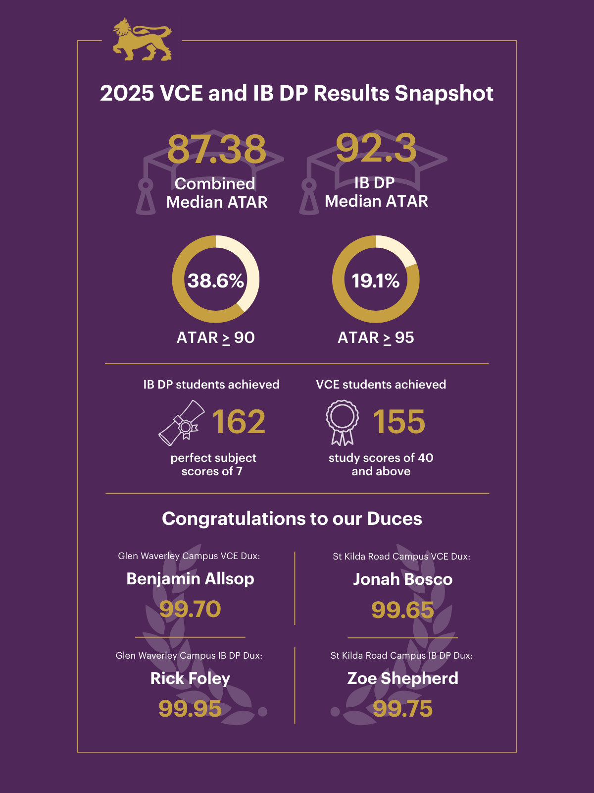 As a leading coeducational open-entry school, we are immensely proud of the achievements of our Class of 2025 VCE and IB Diploma Program (IB DP) graduates.